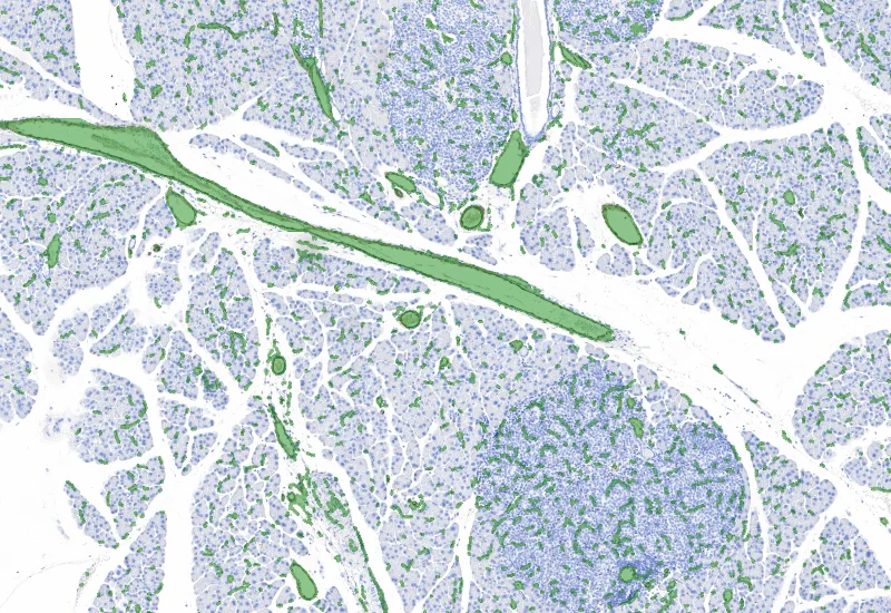 Detect blood vessels based on appropriate stains (e.g. CD31), measure vessel and lumen areas, and export vessel number, density, and areas of vessels, endothelium, and lumina.