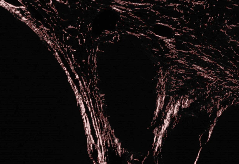 The Sirius Red Polarized App allows for quantification of collagen type I and type III based on Sirius Red Staining imaged with polarized light. It outputs the region area (µm2), the area of collagen type I = red fibres (µm2), collagen type III = green fibres (µm2) and overlapping fibres (µm2).