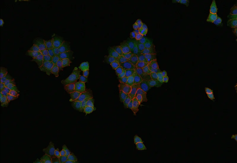 Unmix up to three markers in IHC/HC slides, segment cells into nucleus, perinuclear area, cytoplasm, and membrane (e.g. HER2/neu), measure up to 20 intensity, statistic, and morphometric parameters per compartment plus membrane intensity and angle.