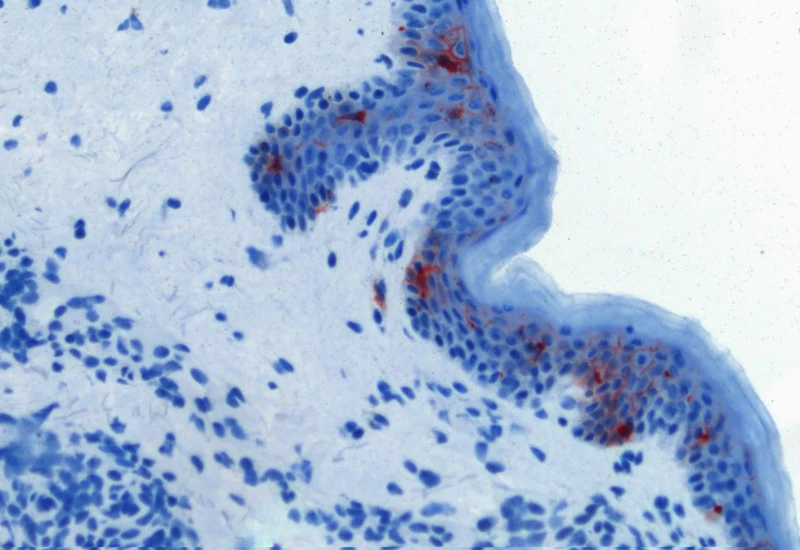 immune cells, brightfield, macrophages, immunohistochemistry, epidermis, langerhans cells, dermatology, CD68