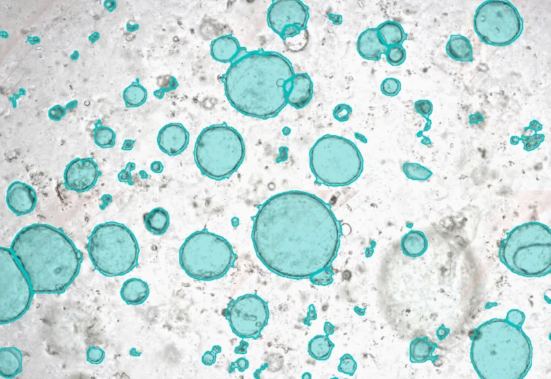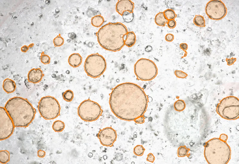 The Organiod App detects cultured organoids using the machine learning classifier. It outputs number and total area (µm2) of organiods and categorizes them into different size classes.
