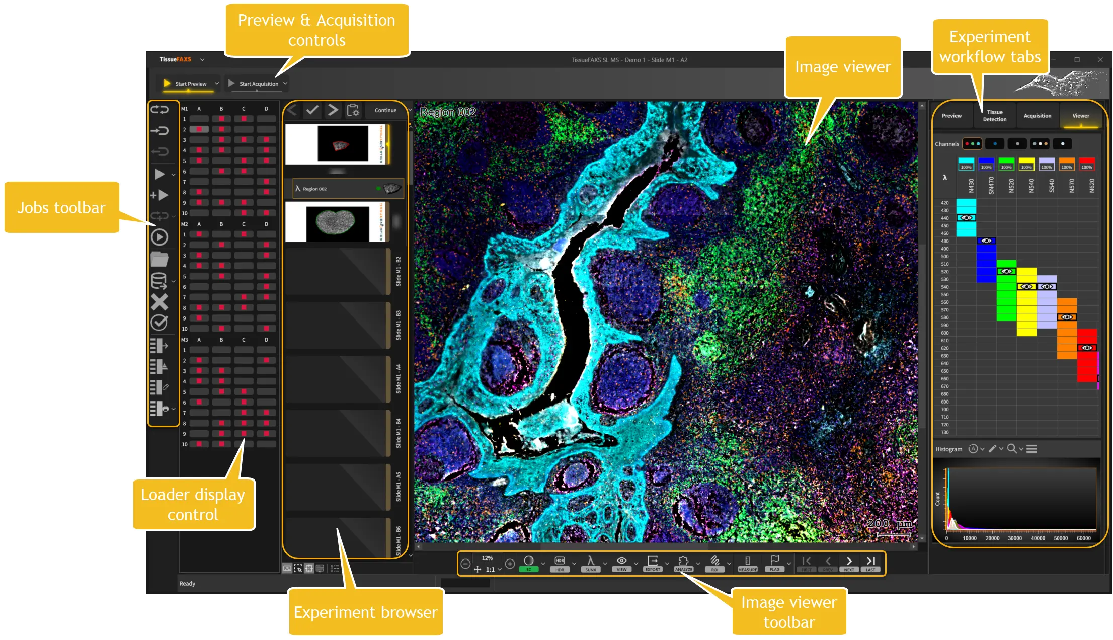TissueFAXS Viewer is a free, standalone desktop application for exploring high-resolution virtual slides generated by TissueFAXS systems. It allows researchers and collaborators to navigate brightfield, fluorescence, or multispectral scans, view annotations, and assess results without needing the full imaging setup. It's the ideal tool for sharing and reviewing data across teams.