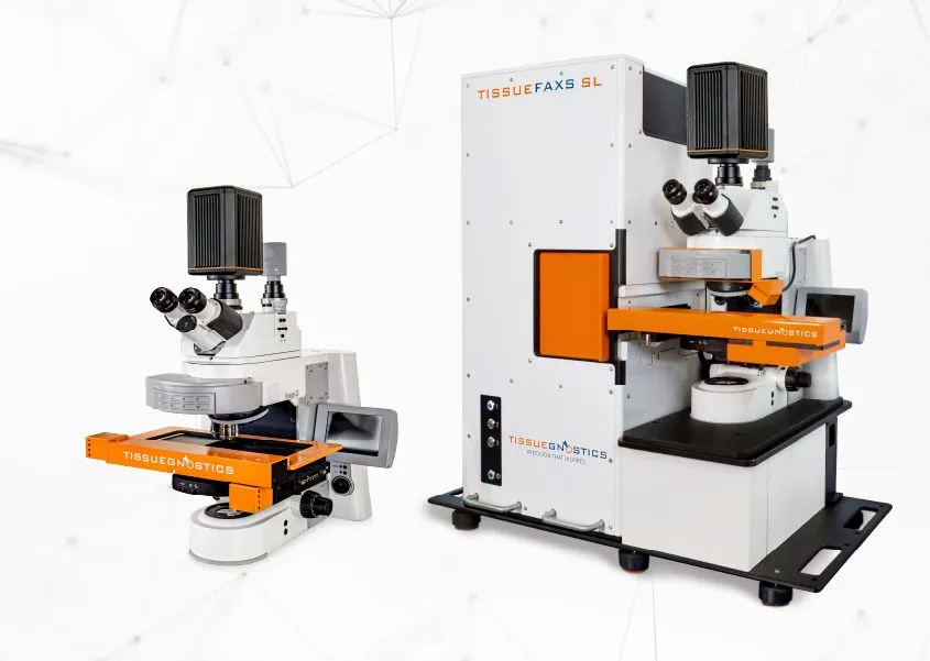 The TissueFAXS Spectra and Spectra SL systems are designed for seamless multispectral whole-slide imaging. Using liquid crystal tunable filter (LCTF) technology, they allow in-situ phenotyping of up to 8 markers per scan with minimal channel bleed-through and optimized spectral separation. These systems support complex research demands like immune profiling or spatial biology, with downstream analysis tools ensuring ready-to-publish results.
